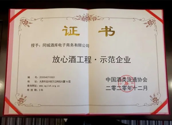 祝賀|同城酒庫榮獲2020“放心酒工程?示范企業(yè)”稱號!