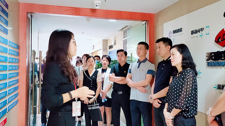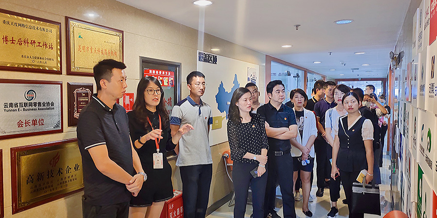 2020年7月7日下午,共青團(tuán)臨滄市委書記丁玲一行15人在共青團(tuán)昆明市委副書記林勤同志及共青團(tuán)西山區(qū)委書記吳陽(yáng)青同志的陪同下來(lái)到天度集團(tuán),圍繞青年電商創(chuàng)業(yè)、直播帶貨、電商扶貧等內(nèi)容進(jìn)行考察交流