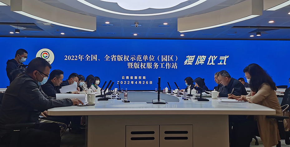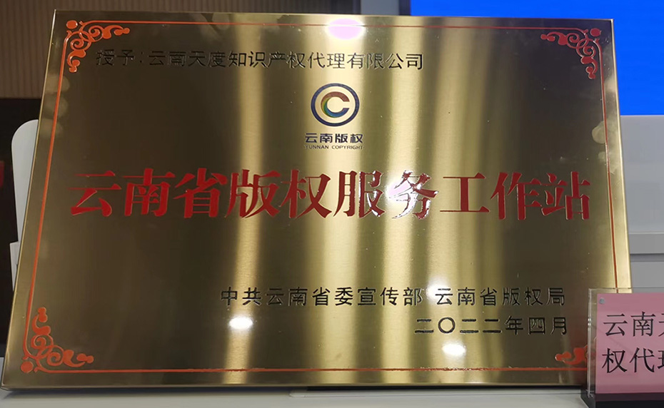 2022年全國、全省版權(quán)示范單位(園區(qū))暨版權(quán)服務(wù)工作站授牌儀式今日舉行,云南天度知識(shí)產(chǎn)權(quán)代理有限公司等10家企業(yè)獲的“云南省版權(quán)服務(wù)工作站”授牌。