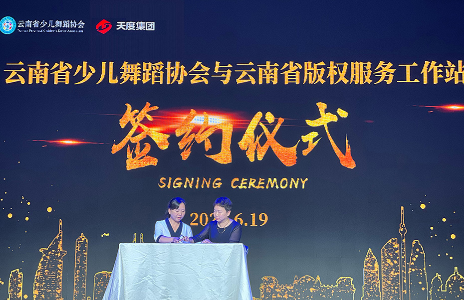 在頒獎典禮現(xiàn)場,云南省少兒舞蹈協(xié)會與云南天度知識產(chǎn)權(quán)代理有限公司共同簽署《深化版權(quán)保護合作協(xié)議》,雙方將以本次大賽為契機、以版權(quán)服務(wù)工作站為支撐,全力打造云南省少兒舞蹈原創(chuàng)作品版權(quán)公共服務(wù)平臺,并在該領(lǐng)域推廣版權(quán)登記、優(yōu)化版權(quán)生態(tài)、強化版權(quán)保護、推動創(chuàng)新發(fā)展等方面發(fā)揮積極力量。