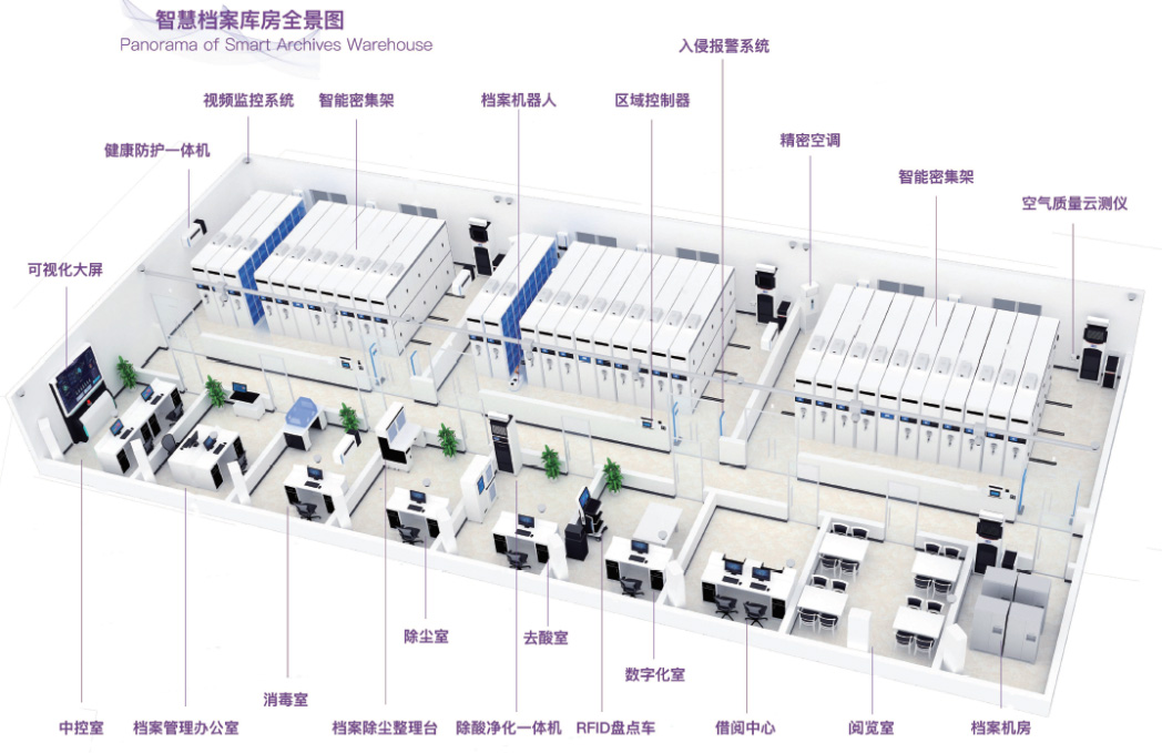 此外,檔案托管中心還配備有消防監(jiān)控、恒溫恒濕管理、中央視頻監(jiān)控、非法入侵警報、門禁管理等系統(tǒng),以及防腐防蛀、防光防塵等管理,配置車輛、掃描器及檔案箱,擁有檔案管理等相關(guān)系統(tǒng),可以高效的保護(hù)和管理客戶寄存的檔案資料。
