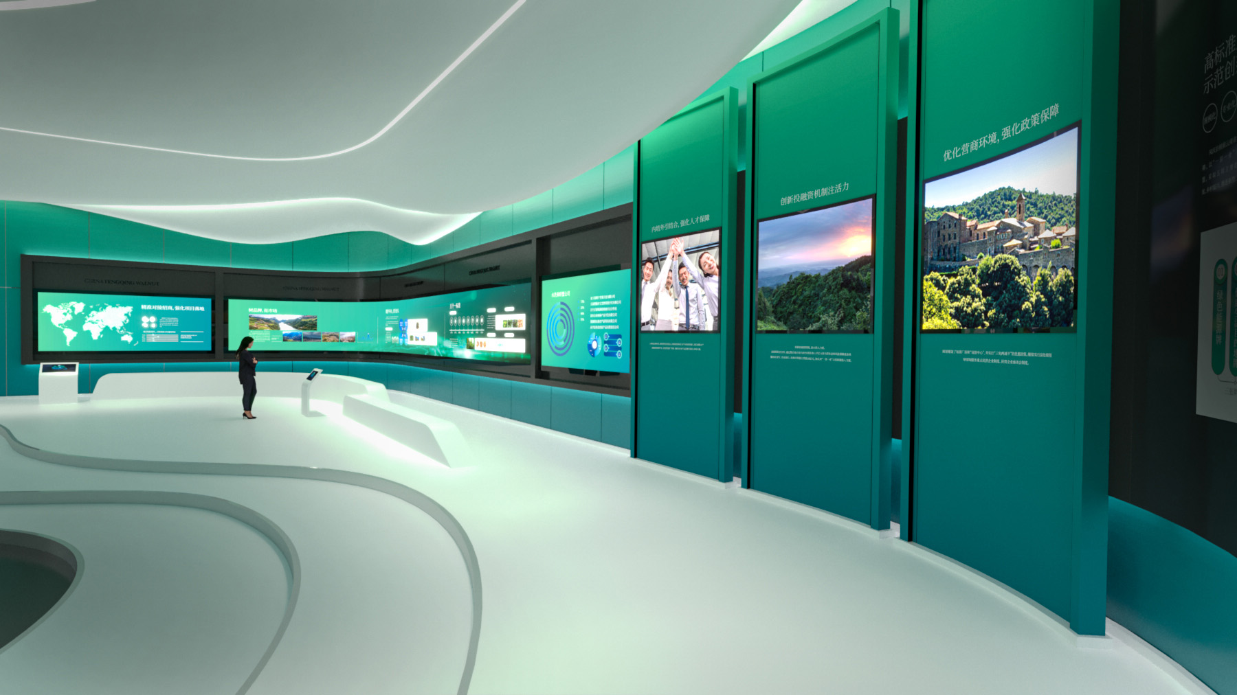 數(shù)字沙盤的運用能夠?qū)⑵髽I(yè)的空間布局和發(fā)展規(guī)模都生動形象的表現(xiàn)出來,能夠讓觀眾一目了然,展示效果直觀有震撼力。數(shù)字展廳要傳達(dá)什么內(nèi)容和信息,需要通過鮮明的主題來展示給觀眾,因此,在進(jìn)行展廳設(shè)計之前,必須對主題定位準(zhǔn)確,通過相應(yīng)的焦點,再配合適當(dāng)?shù)纳省D標(biāo)與裝飾,以協(xié)調(diào)一致、突出重點的方式來達(dá)到傳遞;設(shè)計材質(zhì)選擇時不宜太過于古板,也不適合選擇過于跳躍性的顏色,無論是顏色抑或是數(shù)字展廳主要材質(zhì)都要讓人感覺到大氣、高雅、莊重,因此要選擇合適的顏色來裝飾展廳;設(shè)計可以靈活運用多媒體展項,靈活運用各類多元化的展示技術(shù),采用聲光電結(jié)合硬裝造型來提升參觀者體驗,避免枯燥乏味傳統(tǒng)展廳展示形式,影響整體品位和形象。