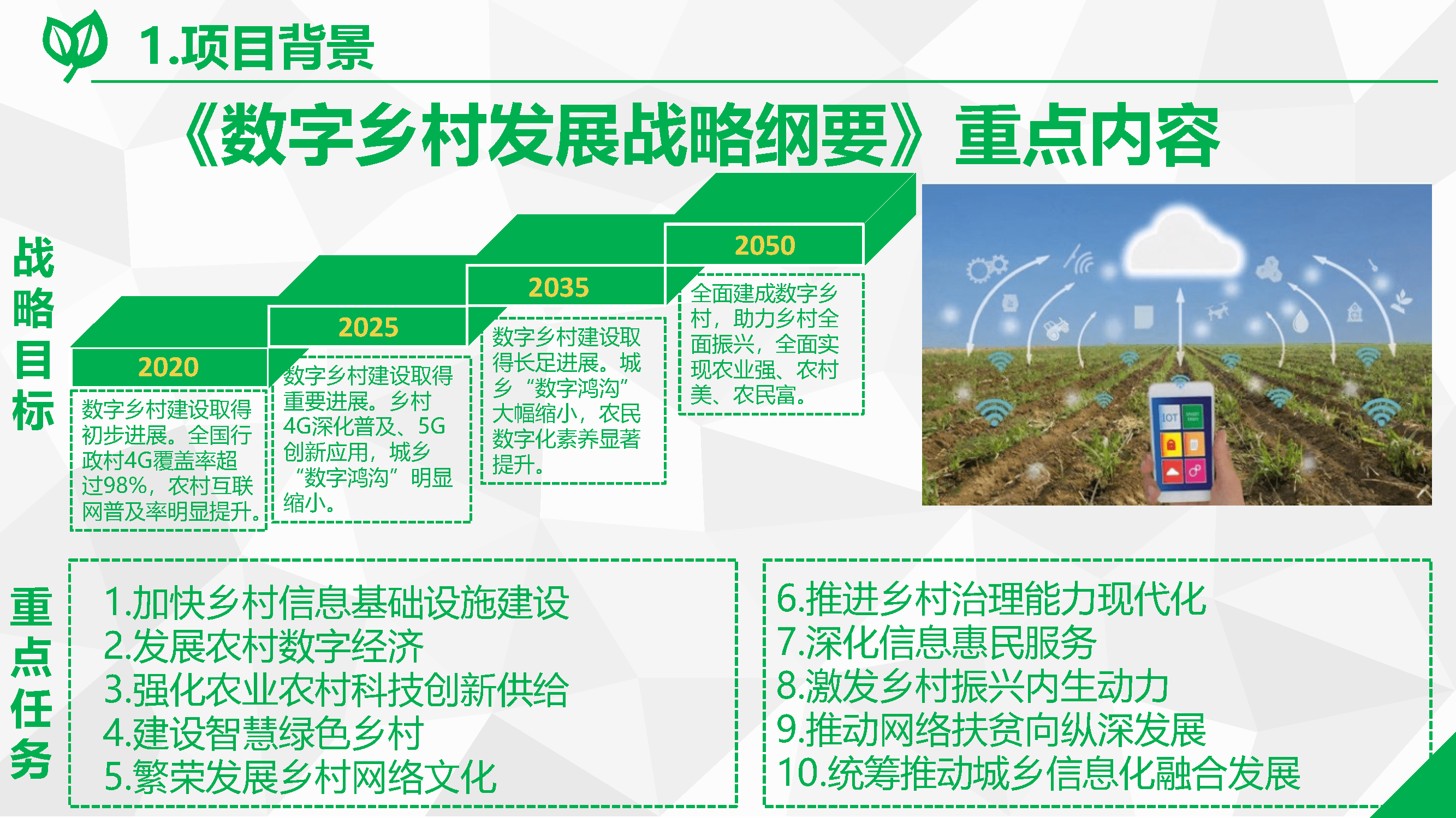 中央網(wǎng)信辦等七部門聯(lián)合印發(fā)《關(guān)于開展國(guó)家數(shù)字鄉(xiāng)村試點(diǎn)工作的通知》提出完善“三農(nóng)”信息服務(wù)體系,“三農(nóng)”問(wèn)題目的是要解決農(nóng)民增收、農(nóng)業(yè)發(fā)展、農(nóng)村穩(wěn)定,三農(nóng)”問(wèn)題關(guān)系到國(guó)民素質(zhì)、經(jīng)濟(jì)發(fā)展,也關(guān)系到社會(huì)穩(wěn)定、國(guó)家富強(qiáng)、民族復(fù)興。聚焦農(nóng)民生產(chǎn)生活實(shí)際需求,將“三農(nóng)”信息服務(wù)體系建設(shè)落到實(shí)處,為村民提供精細(xì)化的村務(wù)管理,人性化的惠民服務(wù),專業(yè)化的農(nóng)事生產(chǎn),生態(tài)化的村容村貌,新時(shí)代的鄉(xiāng)風(fēng)文明。
