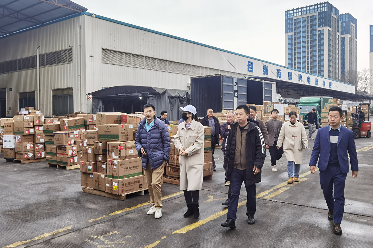 14日下午,考察團到達此次考察交流的第一站,四川合縱藥易購醫(yī)藥股份有限公司電商基地,受到了四川合縱藥易購醫(yī)藥股份有限公司董事、高級副總裁李宇欣帶領(lǐng)的相關(guān)管理團隊的熱情接待。四川合縱藥易購醫(yī)藥股份有限公司是中國首家醫(yī)藥產(chǎn)業(yè)互聯(lián)網(wǎng)上市企業(yè),是一家數(shù)智醫(yī)藥大健康生態(tài)型企業(yè)。業(yè)務(wù)涵蓋醫(yī)藥新零售、醫(yī)藥B2B電商、數(shù)字化賦能、醫(yī)藥批發(fā)、醫(yī)藥公共服務(wù)、醫(yī)藥供應(yīng)鏈、智能物流、C端矩陣、互聯(lián)網(wǎng)醫(yī)療、醫(yī)藥健康金融、大健康管理等眾多板塊。為全產(chǎn)業(yè)鏈合作企業(yè)提供優(yōu)質(zhì)產(chǎn)品、先進平臺、豐富資源、創(chuàng)新技術(shù)與完善服務(wù),助力生態(tài)伙伴加速增長與永續(xù)發(fā)展,共同構(gòu)建數(shù)智醫(yī)藥大健康產(chǎn)業(yè)鏈新生態(tài)。