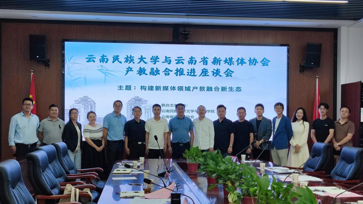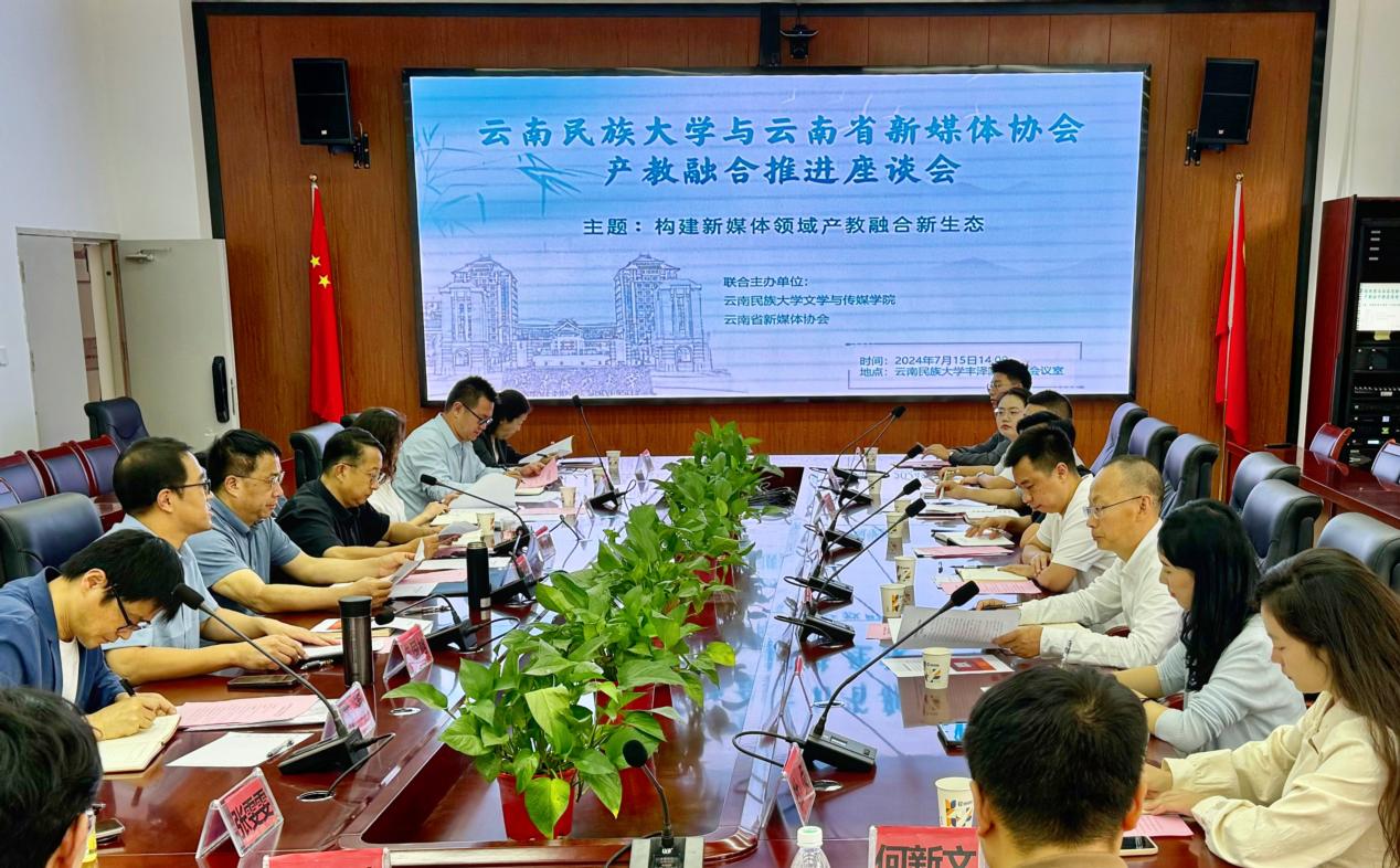文學(xué)與傳媒學(xué)院副院長(zhǎng)陳順堯、許麗華,學(xué)校教務(wù)處教學(xué)研究科科長(zhǎng)張勝婷,學(xué)院新聞系主任張?chǎng)┑扰c會(huì)人員圍繞如何進(jìn)一步深化校企合作和產(chǎn)教融合,完善人才培養(yǎng)模式,新媒體賦能云南經(jīng)濟(jì)社會(huì)發(fā)展、推動(dòng)大學(xué)生實(shí)踐實(shí)訓(xùn)與就業(yè)創(chuàng)業(yè)等內(nèi)容踴躍發(fā)言。大家一致認(rèn)為,云南省新媒體協(xié)會(huì)與云南民族大學(xué)聯(lián)合相關(guān)高校、企業(yè)啟動(dòng)“產(chǎn)教融合共同體”創(chuàng)建工作,并同步推動(dòng)成立“高校專委會(huì)”,建設(shè)開放型公共實(shí)踐實(shí)訓(xùn)基地,不僅滿足社會(huì)對(duì)創(chuàng)新型高質(zhì)量人才的需求,對(duì)推進(jìn)高校教學(xué)改革、提升技術(shù)技能人才培養(yǎng)質(zhì)量,促進(jìn)全省新媒體領(lǐng)域的教育與產(chǎn)業(yè)協(xié)同發(fā)展也具有重要意義。